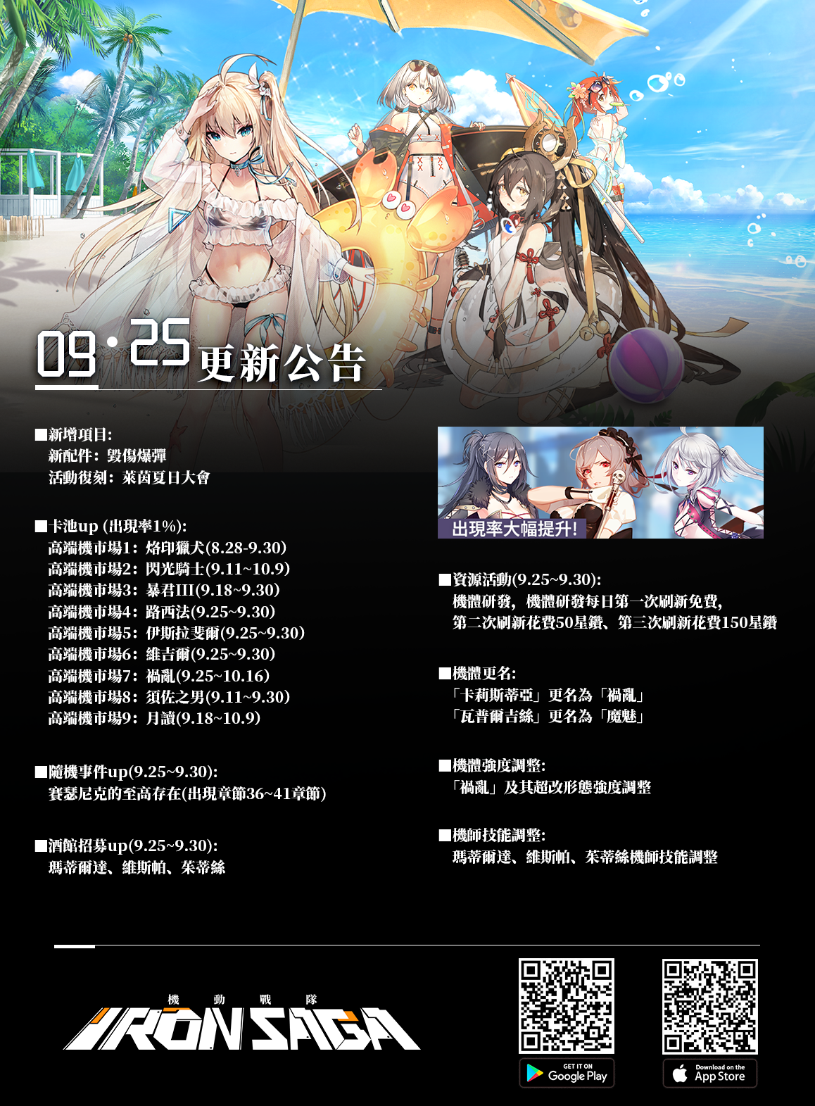 《機動戰隊》將於9月25日晚上進行不停服更新,(預計18:00左右更新,實際更新完成時間請以官方最新通告為準)