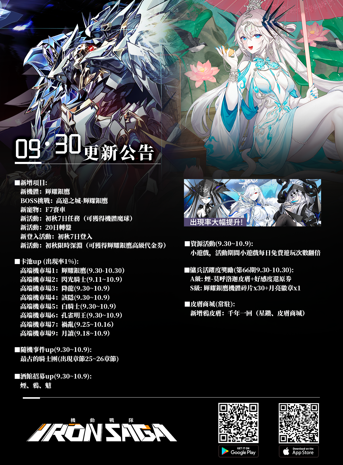 【高端機市場1】: 9月30日-10月30日,輝耀銀鷹出現率提升至1%