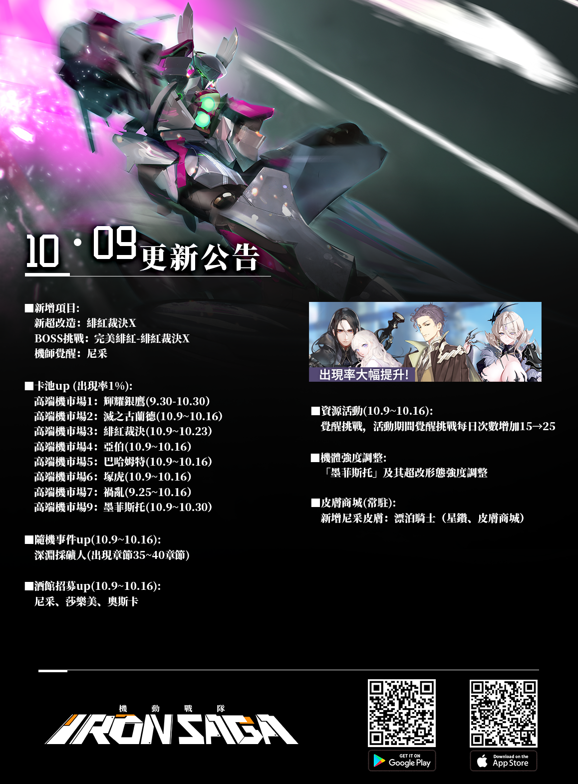 《機動戰隊》將於10月9日晚上進行不停服更新,(預計18:00左右更新,實際更新完成時間請以官方最新通告為準)