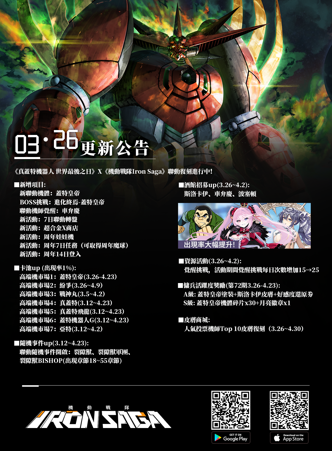 《真蓋特機器人 世界最後之日》X《機動戰隊Iron Saga》聯動復刻進行中!